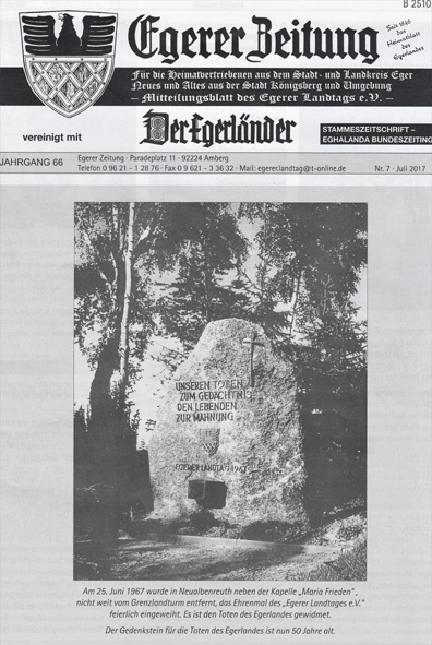 Beitrag der Zeitschrift "Der Egerländer - Eghalanda Bundeszeitung"